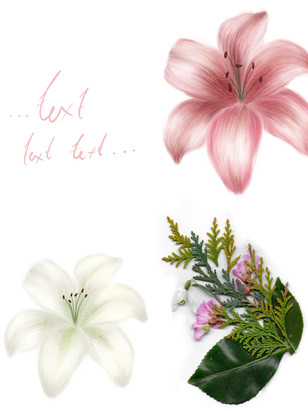 The images below focus on the composition and balance of contrasting elements - here I focused on ways I could make the harsh and sharpness of the scanned flowers, compliment the delicacy of my flower drawings.