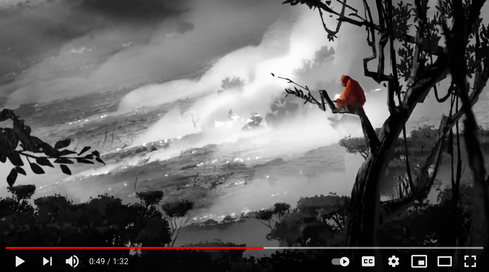 The middle and second third of the animation can be understood from the captured images below. When asked why the orangutan is in the girls bedroom, the advert goes on to explain the destruction of the orangutans home. Dark, monochrome, bleak visuals showcase from the orangutans perception what happens to them and their habitat when humans destroy the forests they live within - most are killed and/or seperated. This whole section of the advert is both frightening and awakening - we are taken away from the colourful flamboyance of the orangutan we first meet, and the scene is flipped to convey the reality of deforestation. The contrast of the black and white background to the dark but significant orange of the suffering orangutans is a powerful technique to showcase their terrified, desperate reactions.